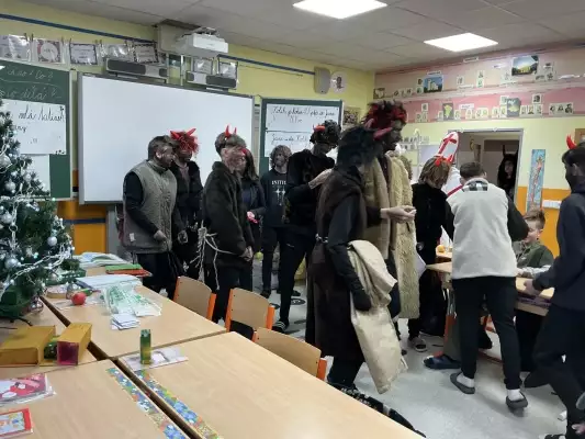 V pátek 5. 12. k nám do třídy 5. B vtrhli čerti. Řinčeli řetězy, zvonili zvonci, dělali pekelný rámus. Naštěstí tu byl i svatý Mikuláš a andělé. Mikuláš měl autoritu – rychle čerty srovnal do latě. Pak pochválil hodné děti a pokáral hříšníky. Děti ve třídě Mikuláši, andělům a čertům svatosvatě slíbily, že už nebudou zlobit. Jako bonus si každý z žáků odnesl hrstku pekelného uhlí a něco dobrého na zub.