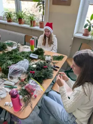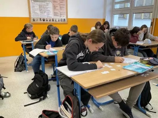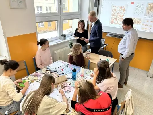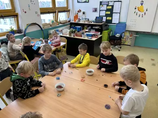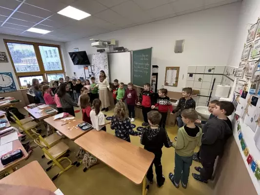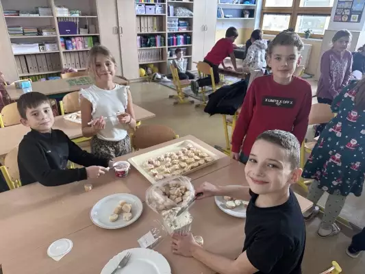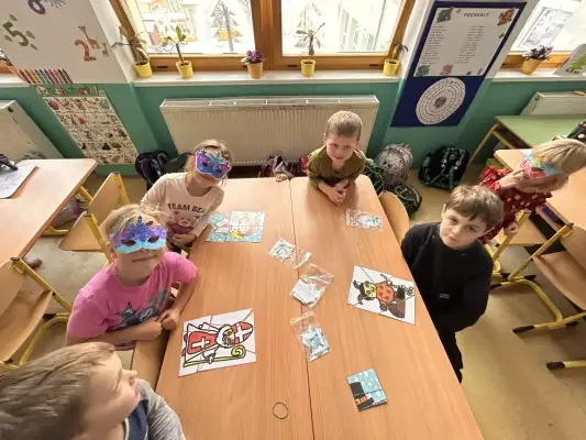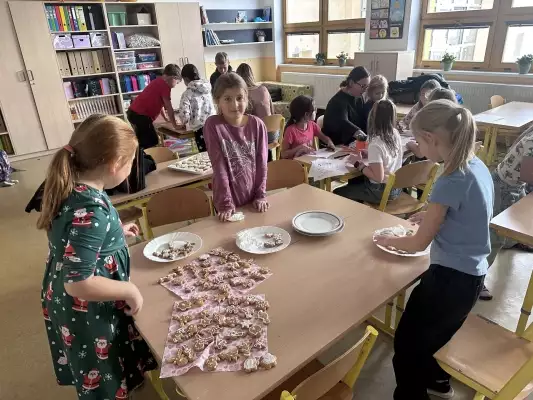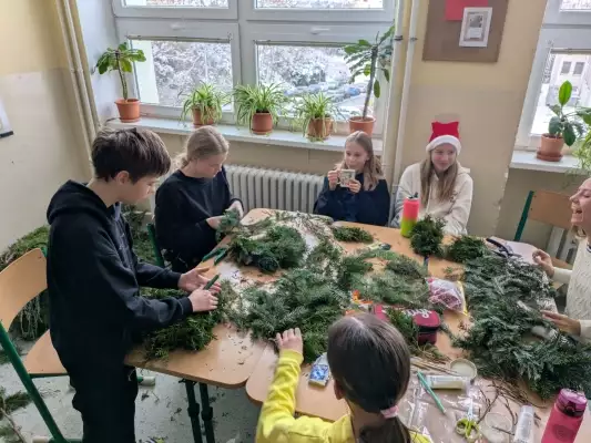 Ve čtvrtek 27. listopadu proběhl na naší škole Den otevřených dveří, který se setkal s velkým zájmem veřejnosti. Během celého dne si mohli návštěvníci prohlédnout prostory školy, podívat se, jak u nás probíhá výuka a seznámit se s našimi vzdělávacími metodami. V dopoledních hodinách jsme se učili podle rozvrhu, odpoledne pak byla ke shlédnutí naplánovaná výuka některých předmětů nebo tvořivé dílničky, které mapovaly činnost školy a umožnily návštěvníkům lépe poznat naše aktivity. Vyzdobené chodby nabízely k prohlédnutí panely s prezentací projektů, projektem EkoŠkola, úspěšným časopisem Infoželvík, výstavou výtvarných děl na téma „Naše školní zahrada“. Atmosféru zpříjemnila 6. B svým hudebním výstupem. Čajovna u třídy 7. B pak nabídla čaje z bylinek z naší školní zahrady, které krásně provoněly školu a navodily předvánoční atmosféru. Někteří z žáků vyráběli adventní věnce nebo vánoční lucerničky. Vůně vánočního cukroví lákala do podkroví školy do naší kuchyňky, kde žáci 8. A pekli, dělali palačinky a jednohubky s vynikajícími pomazánkami. A aby těch vůní nebylo málo, 8. B si připravila voňavé malování kávou. Také v budově 1. stupně to žilo. Tancovalo se, pekly se perníčky, dělaly pomazánky na jednohubky, tvořily se masky se zimní tematikou nebo náramky pro maminky. Jiné třídy předvedly návštěvníkům, že ani učení nemusí být zrovna nuda – můžeme během hodin hrát matematické hry, geometrické hlavolamy, češtinářské kvízy, tabletem se vybavit do hodiny o starověkém Egyptě nebo dělat fyzikální pokusy.