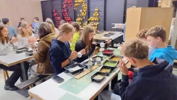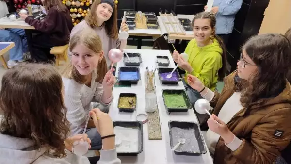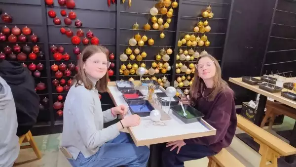 Zjistili, že foukání skleněných baněk je nelehká práce, a obdivovali šikovné ruce malířek. V tvůrčí dílně se proměnili v třpytivé umělce! Každý si odnáší domů originální kousek – ten, který na stromečku bude svítit nejvíc!