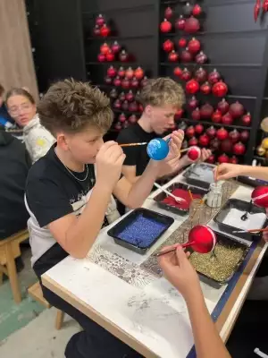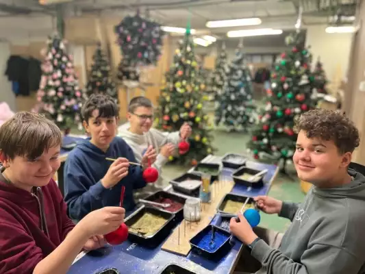 Advent je tu a sníh nikde. Proto se žáci osmých tříd vyjeli vánočně naladit do Kouliera – výrobny skleněných vánočních ozdob.
