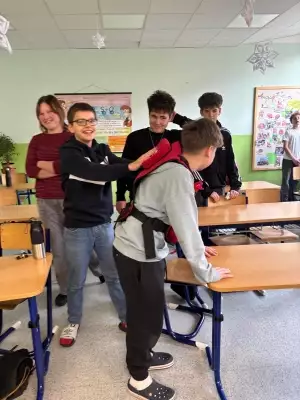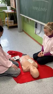Žáci osmých ročníků si v minulém týdnu vyzkoušeli, jaké to je "zachránit lidský život". V rámci programu ČČK "První pomoc do škol" nezůstalo jen u teorie. Naši osmáci si prakticky procvičili resuscitaci, ošetření úrazů i reakci v krizových situacích. Teď už vědí, že nejdůležitější je nebát se a začít pomáhat! Velké díky patří Českému červenému kříži a hlavně skvělé lektorce za tuto užitečnou akci.